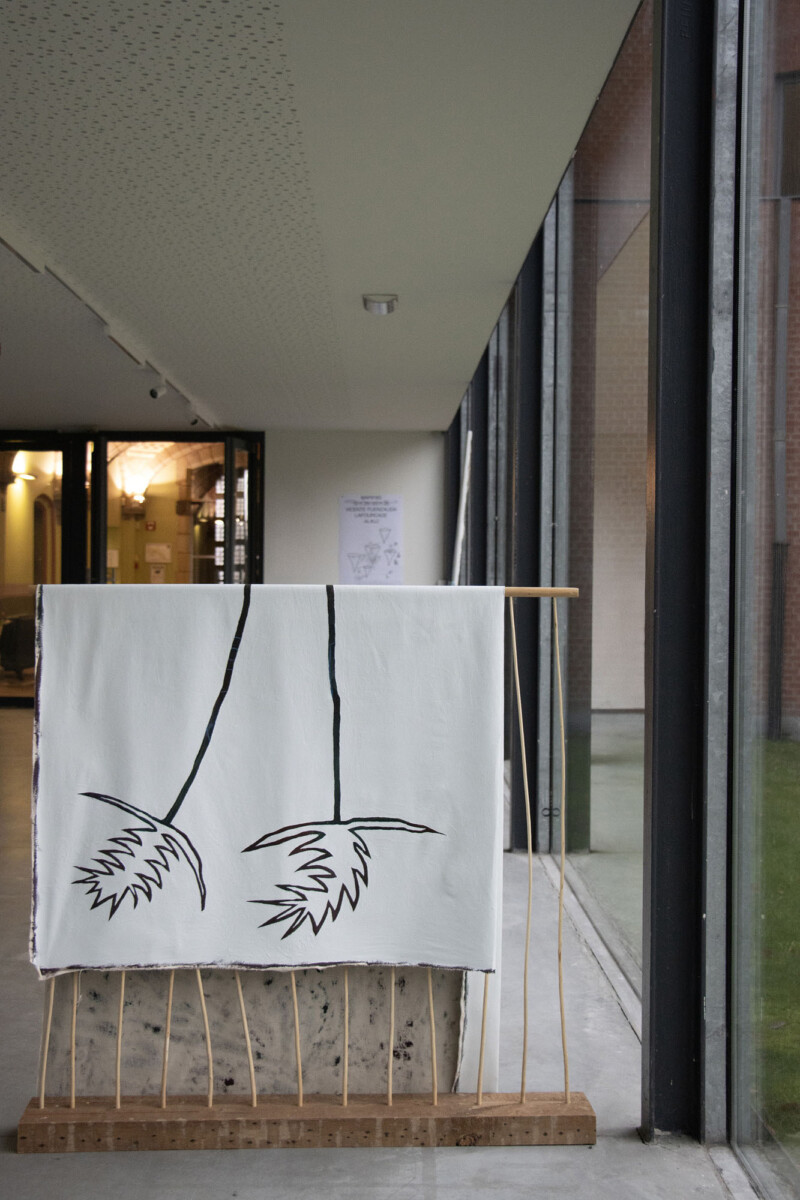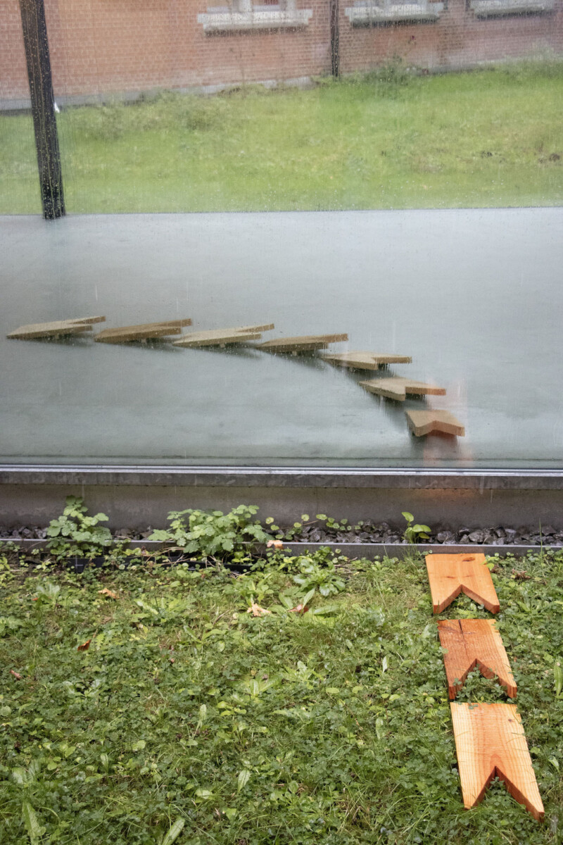 Je schreef zeven korte tekstjes en je plaatste deze naast je zestien werken. Ze deden me toestappen op een verre thuis – een leven van landschappen, puzzelstukjes in kaders – fragiel, maar net dragend genoeg. Een glimlach, herkenning. Mag ik ze spiegelen in een gelijk aantal stukjes die uit mezelf komen? Mag ik ze in uw landschap neerplanten?